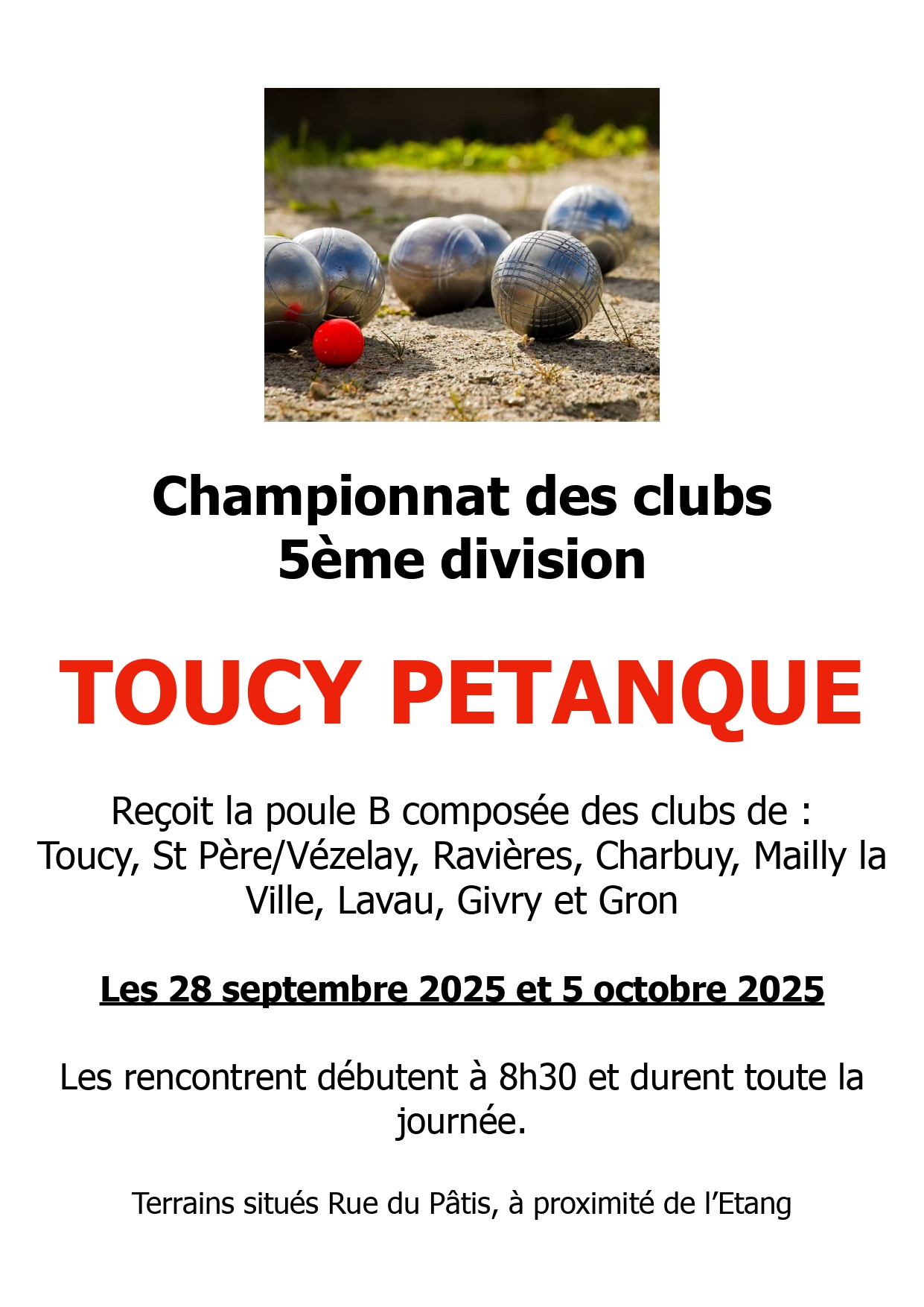 Toucy Pétanque "Championnat des Clubs 5ème Division"