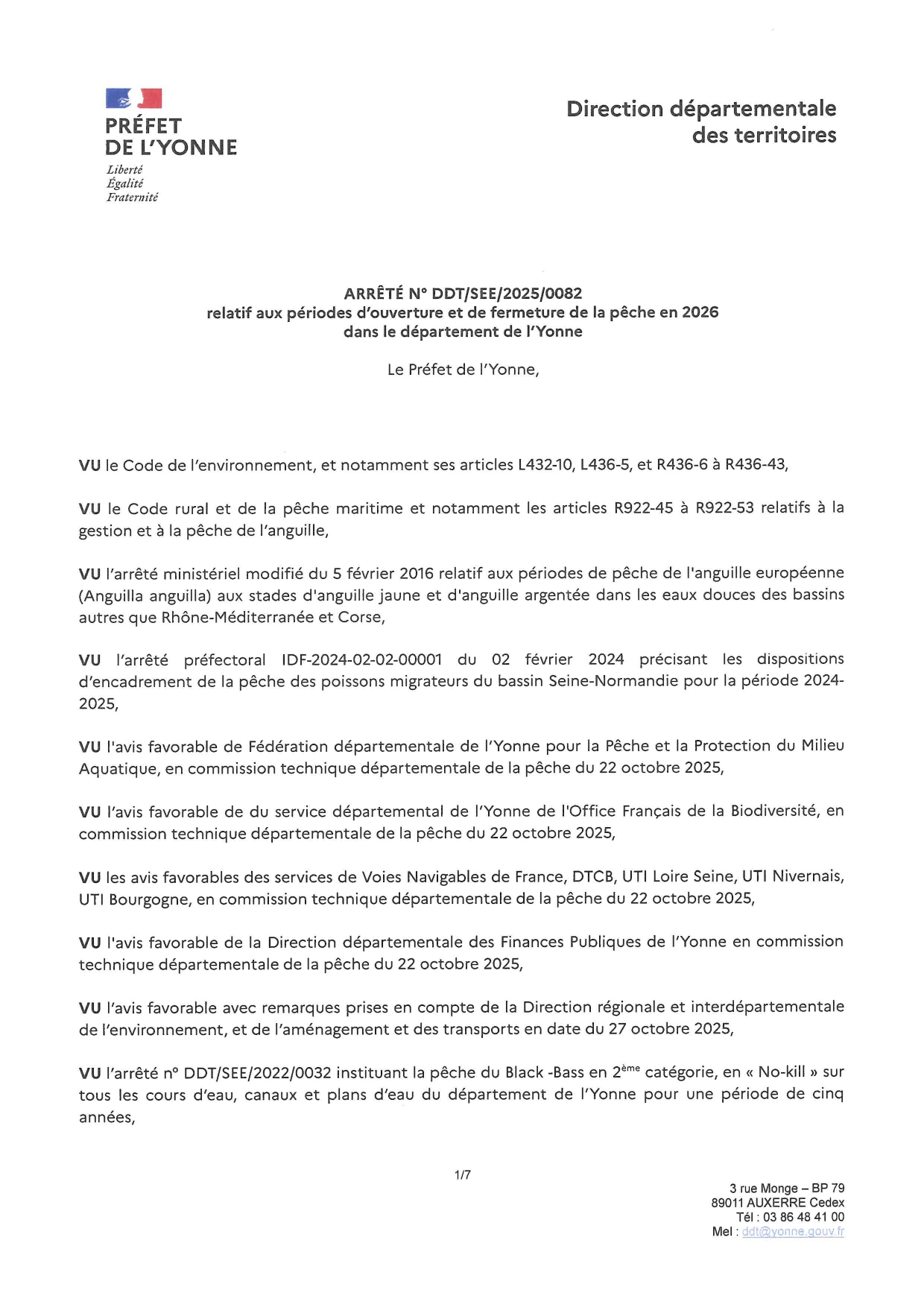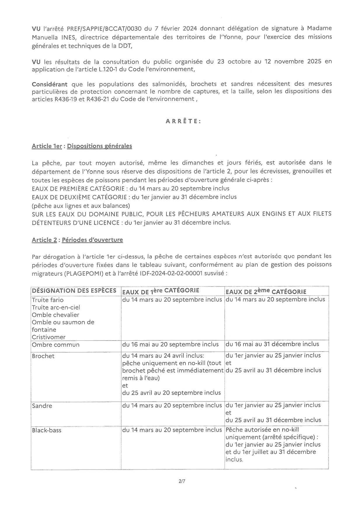 Arrêté Préfectoral : période ouverture/fermeture de la pêche 2026